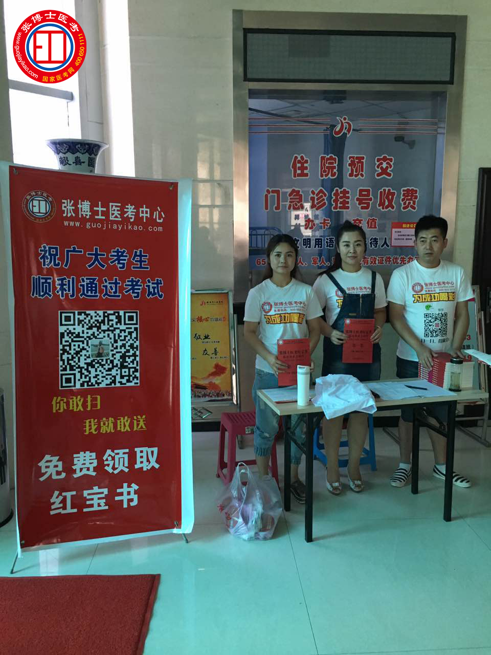 2016年医师资格实践技能考试于7月1~15日在全国各考点开始考试,张博士医考全国333家分校,到考点服务学员,给学员带去祝福和温暖。