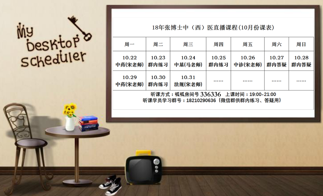 2018年张博士医考中(西)医10月份直播课表
