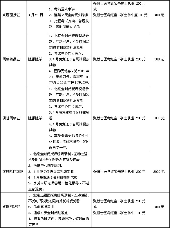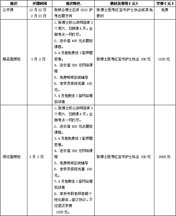 下面是2013年北京张博士医考护士培训各班次介绍,同学们可以根据自己的实际情况和需要选择。