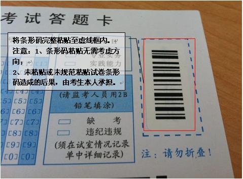 一、考生将试卷封面上的条形码,完整取下,如下图所示: