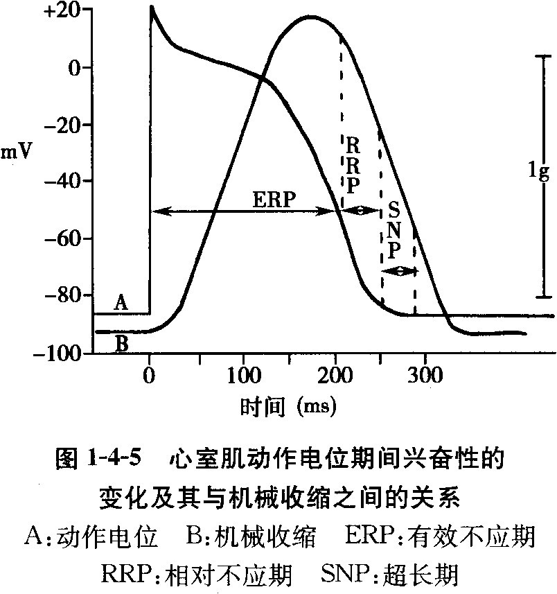因心肌细胞动作电位的时程长,其有效不应期特别长,一直延续到心肌细胞的舒张期开始之后。因此,心肌不会像骨骼肌那样产生完全强直收缩(图1-4-5,图1-4-6)。