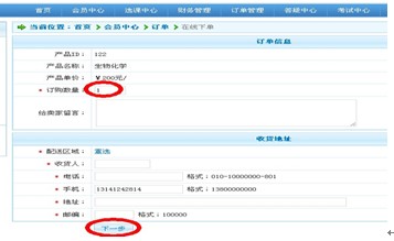 订购数量填写"1",点击"下一步"
