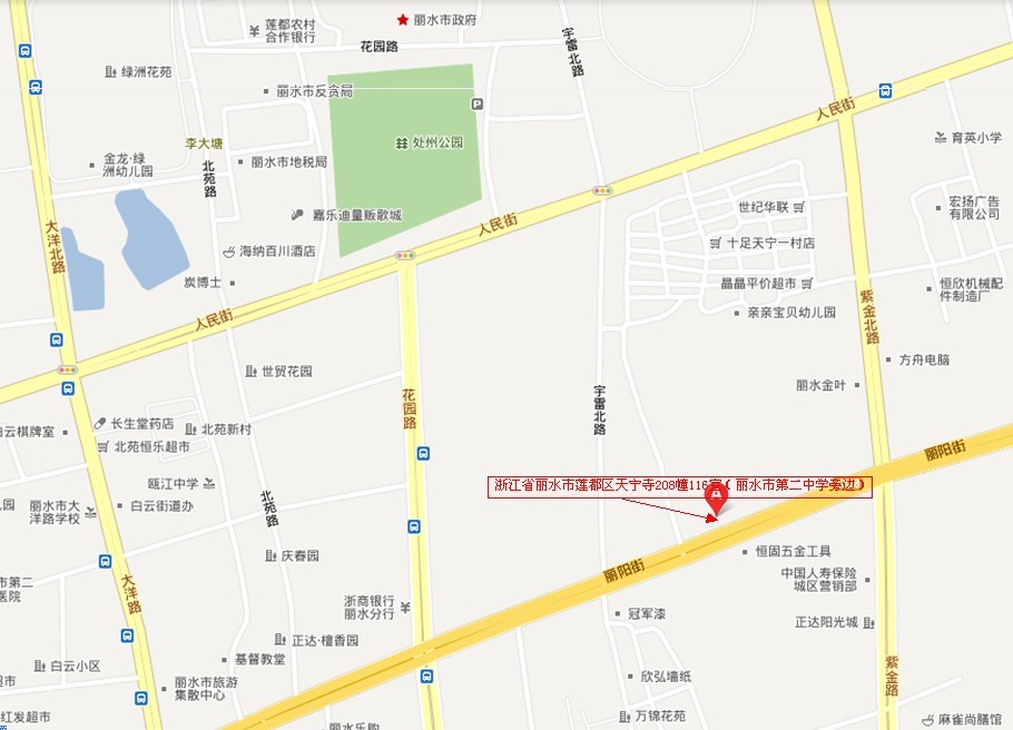 浙江省丽水市莲都区天宁寺208幢116室(丽水市第二中学西校区旁边)