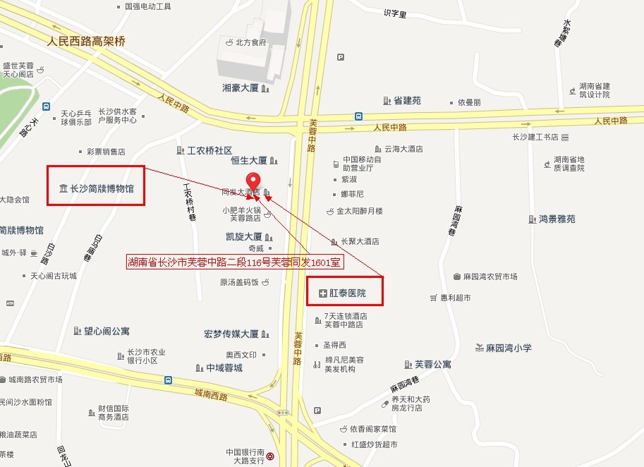湖南省长沙市芙蓉中路二段116号芙蓉同发1601室(湘雅二医院斜对面400米)