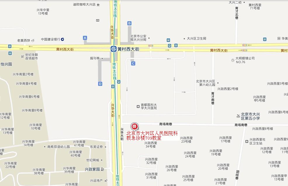 上课地址:北京市大兴区人民医院教学楼709教室(黄村西大街26号)地铁4号线黄村西大街站C口出步行至走110米或到达(大兴区卫生局对面)