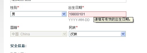 3,填写信息时,如果您填写的格式不正确,输入框将自动变红(鼠标移至红色区可查看错误提示),请您重新输入,直到输入正确为止。