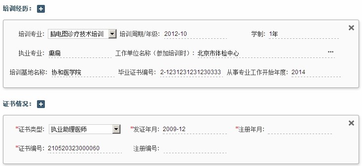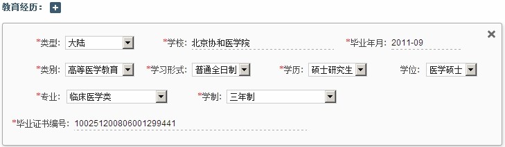 4.教育经历、培训经历、证书情况有多个时,请点击