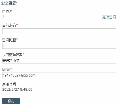 7.此处也可更改密码,点击右上角的“安全设置”进入设置页面,点击“更改密码”进入密码修改页进行更改。更改完成后点击“提交”按钮保存。
