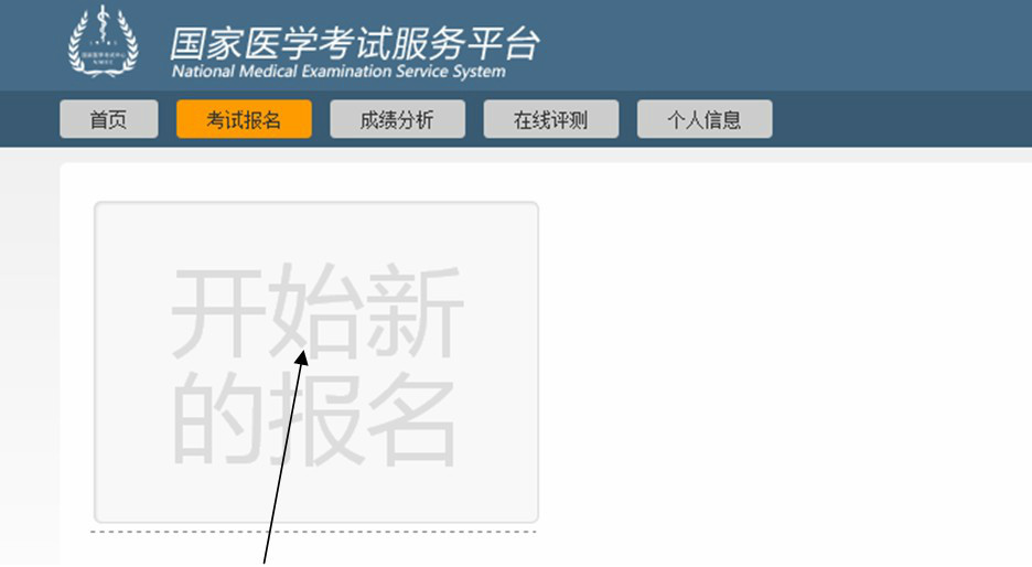 页面左侧显示“开始新的报名”的大按钮为考试报名按钮;点击此按钮开始报名。之后列出了考生可以报名的所有考试类别。如下图