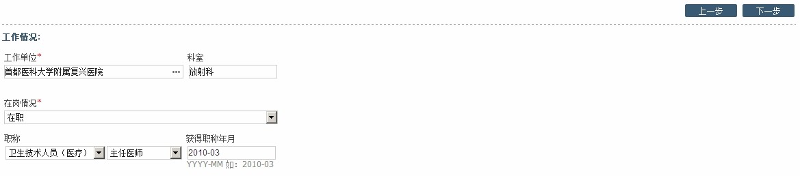 请仔细核实考生的工作情况,在核实过程中如果有改动请更改后点击“下一步”按钮保存并进入下一项。