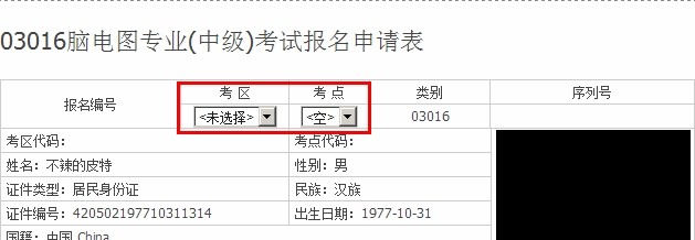 请考生确认本次报名信息并选择考区和考点。如下图所示:
