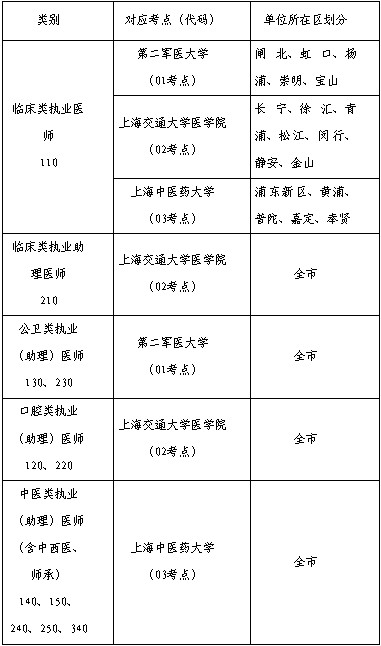 现场报名所需材料及各区域、类别的具体时间见《2014年国家医师资格考试上海考区考生报名通知》