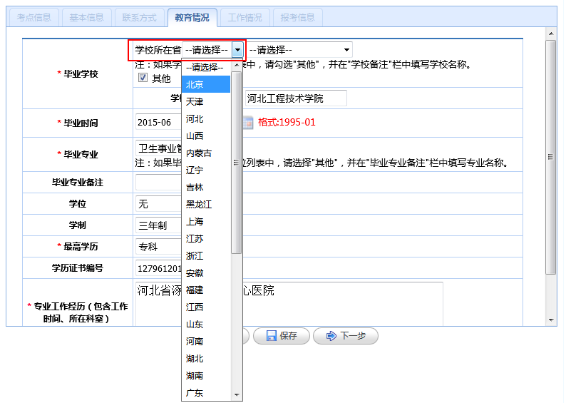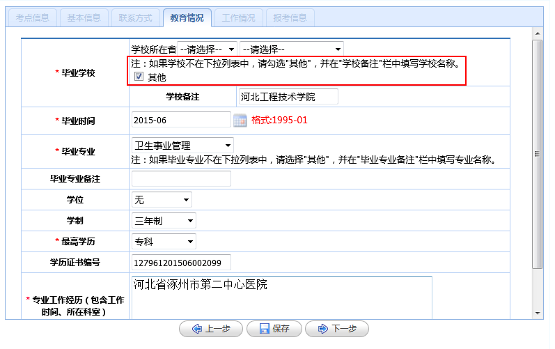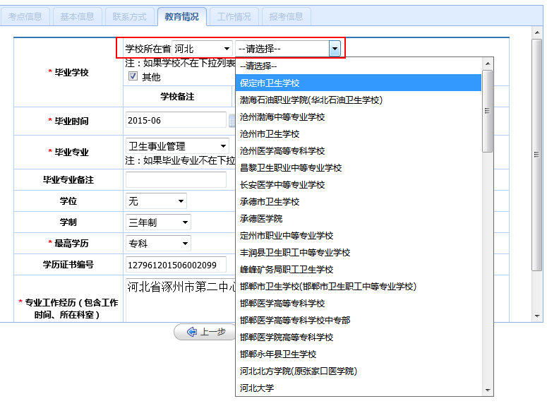 (4)教育情况:根据个人教育情况进行填写。
