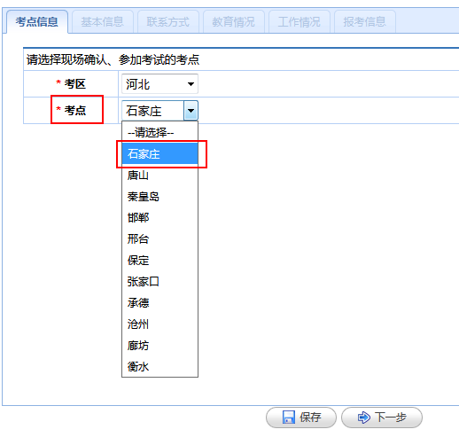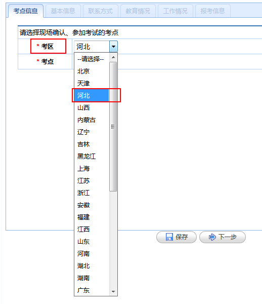 (1)考点信息:根据考生自己所在的考区选择考点进行填写。