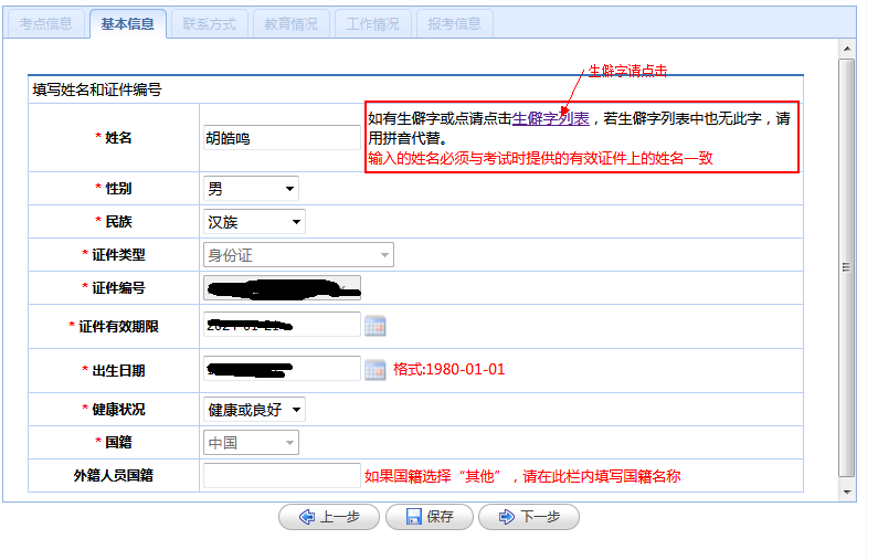 (2)基本信息:按照相应顺序填写考生个人的基本信息进行报名。