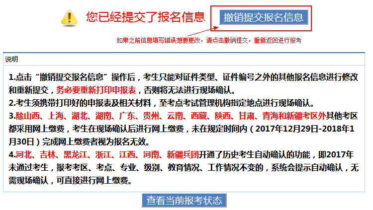 第五步:如有信息填写错误,并提交信息后想要修改,请点击撤销提交。