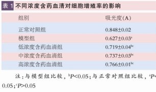 传代细胞随机分为5组,即正常对照组、模型组、低浓度含药血清组、中浓度含药血清组、高浓度含药血清组,每组设5个复孔。