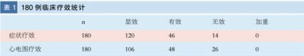 心电图疗效评定结果:显效率为58.9%,有效率为85.6%。治疗期间未发现明显不良反应。具体疗效观察结果可见表1。