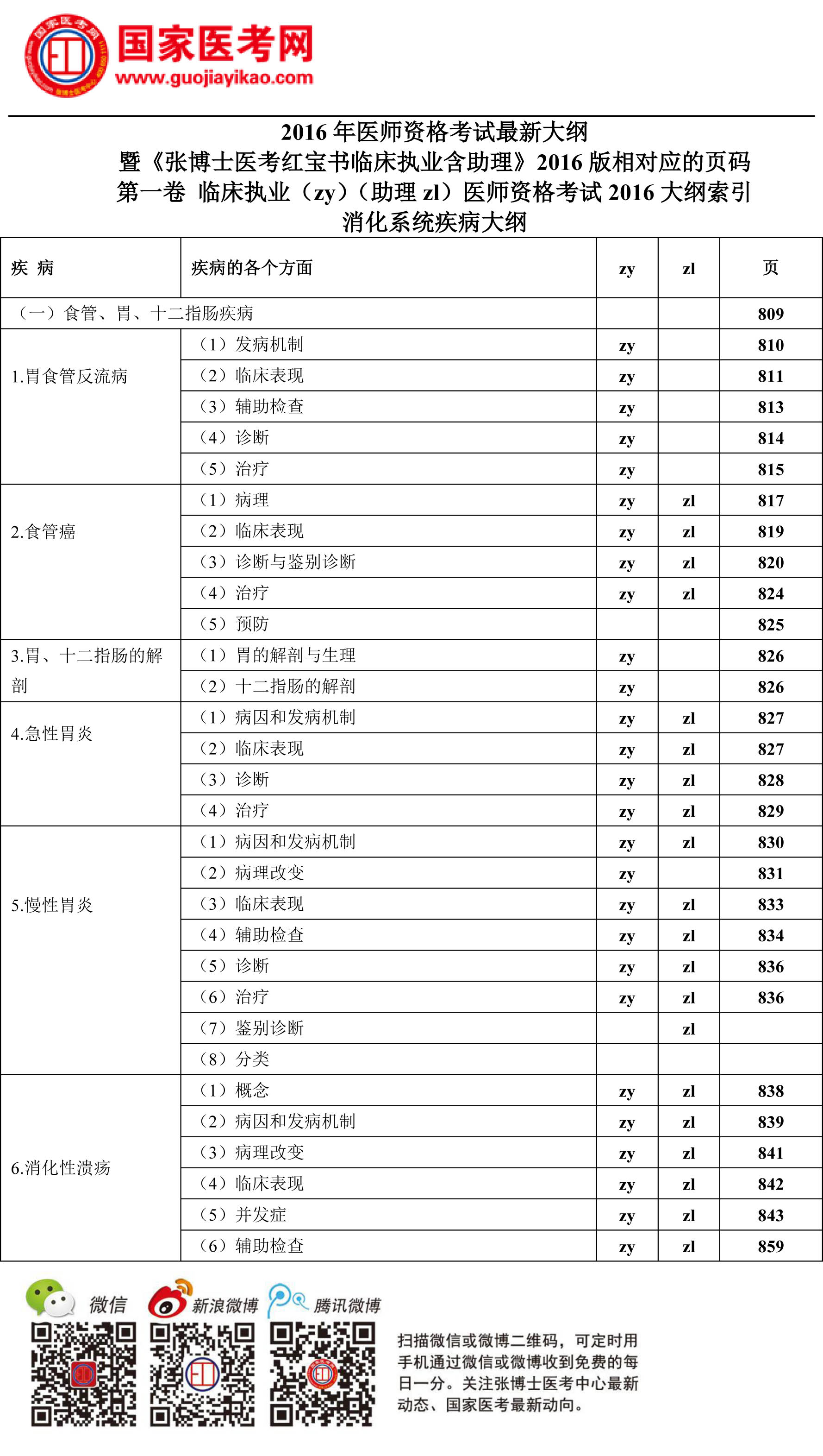 2016年国家医考临床执业含助理大纲——消化系统疾病大纲