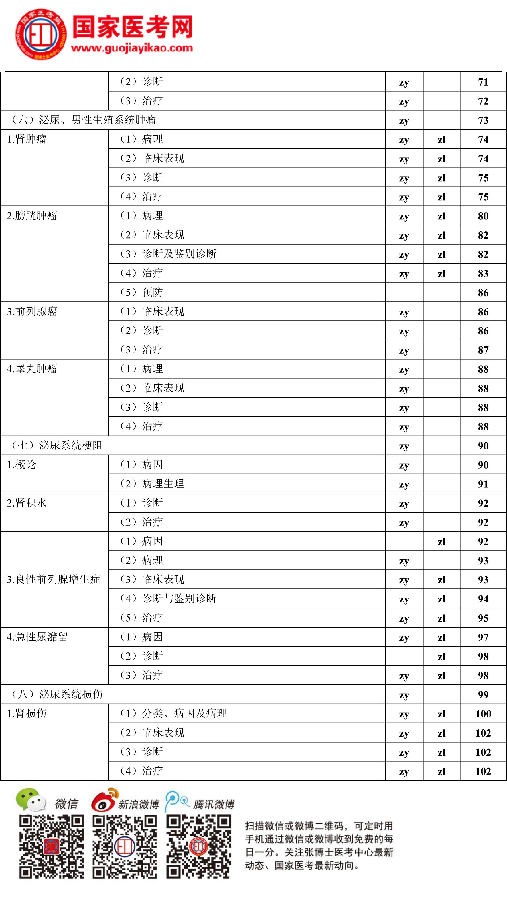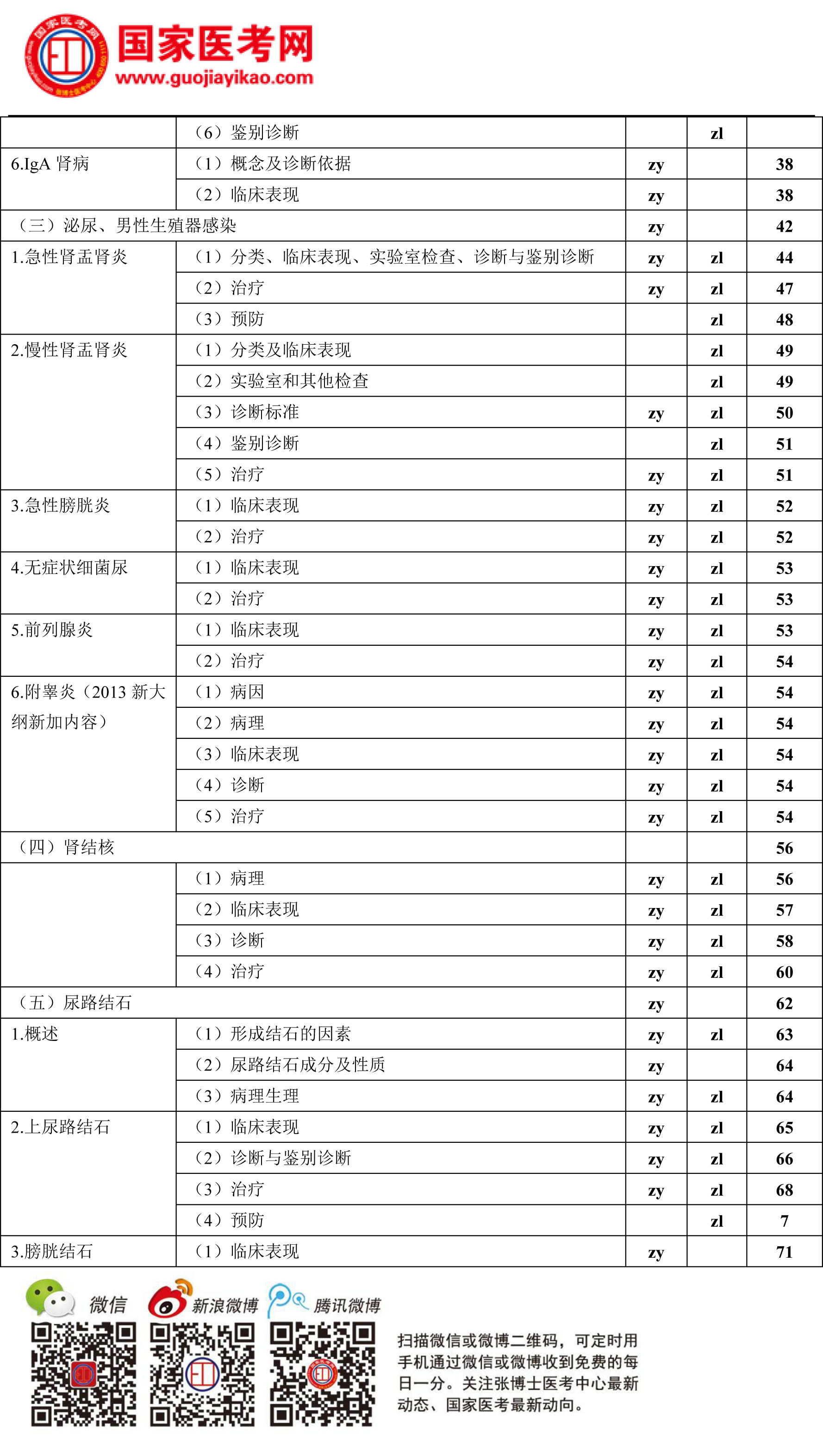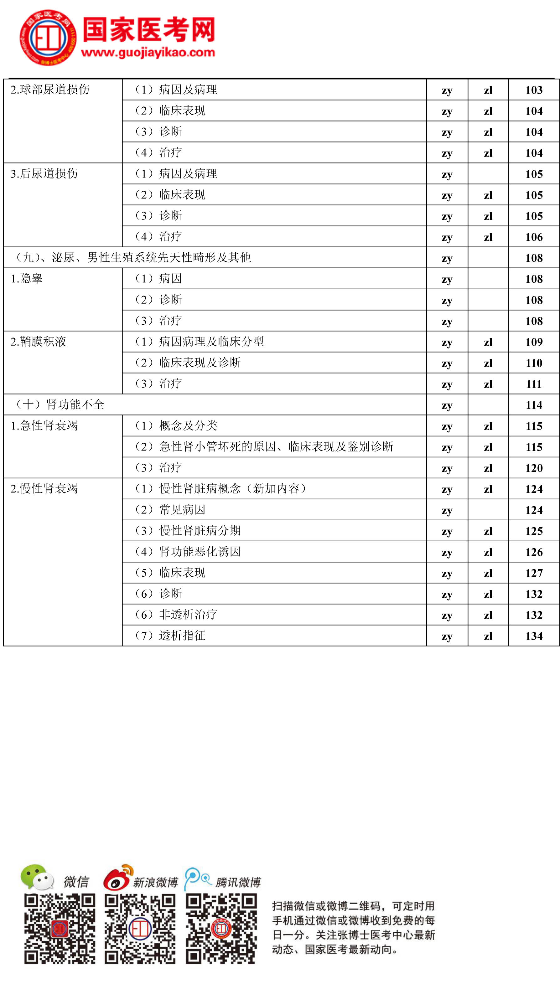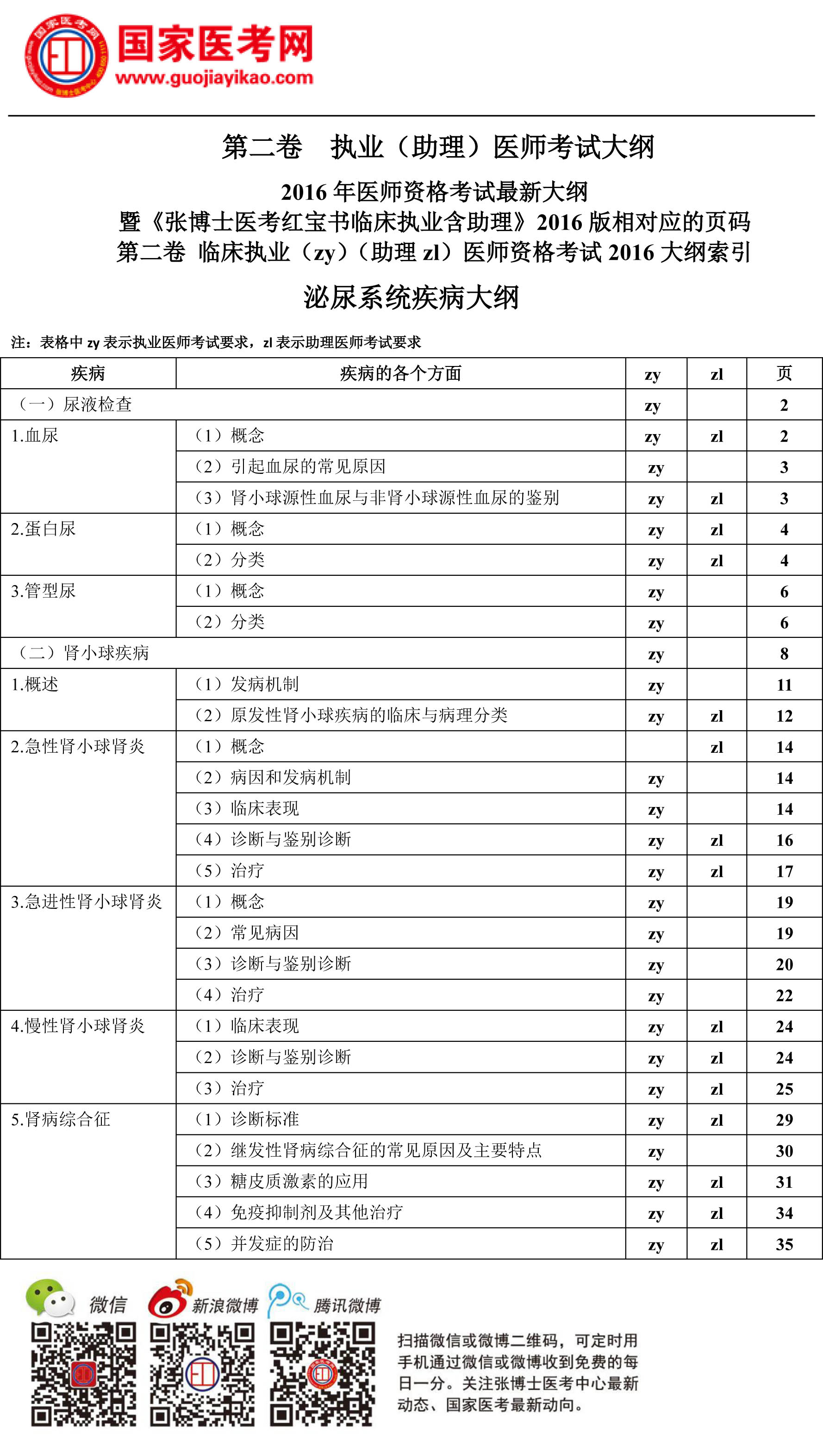 2016年国家医考临床执业含助理大纲——泌尿系统疾病大纲