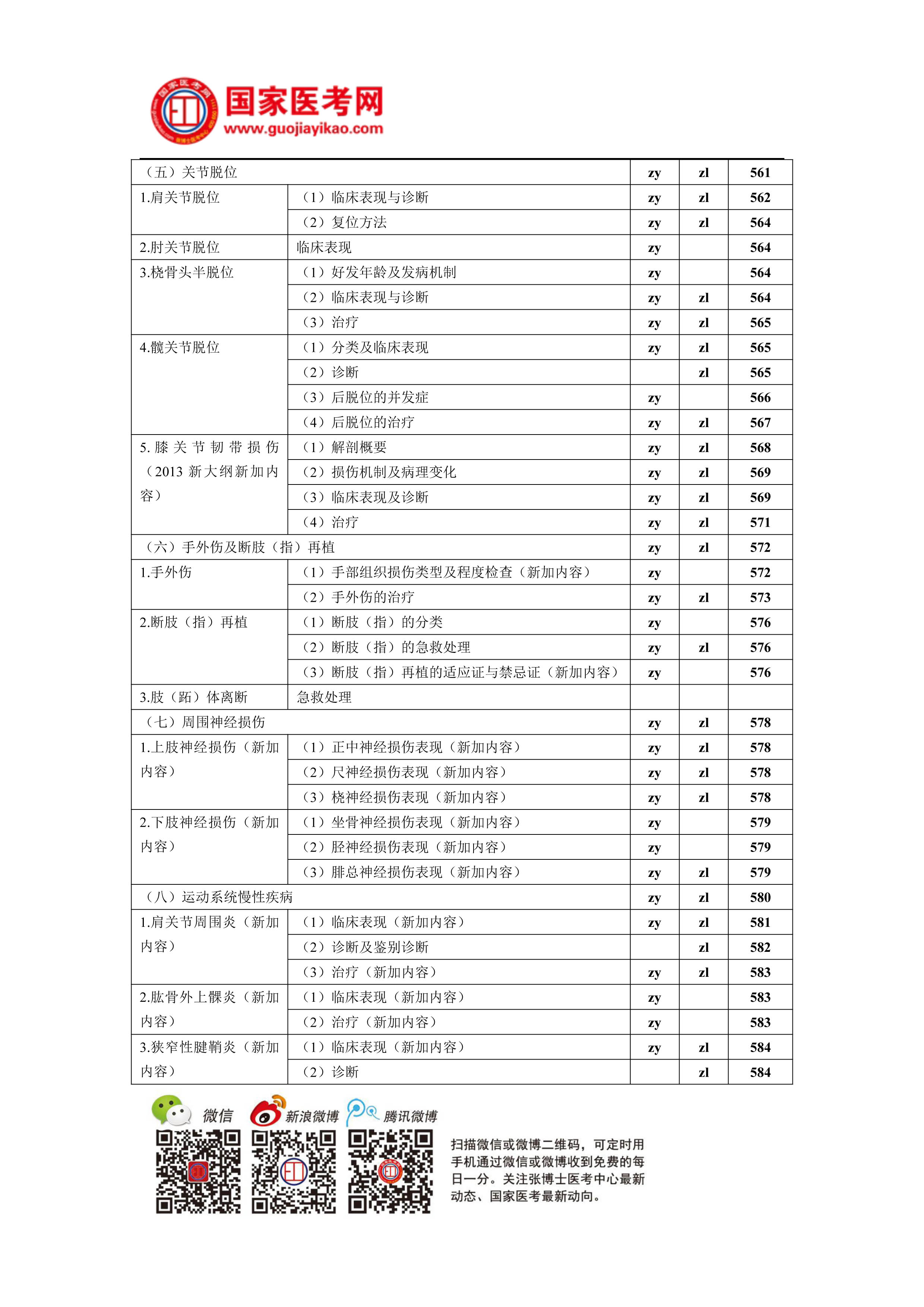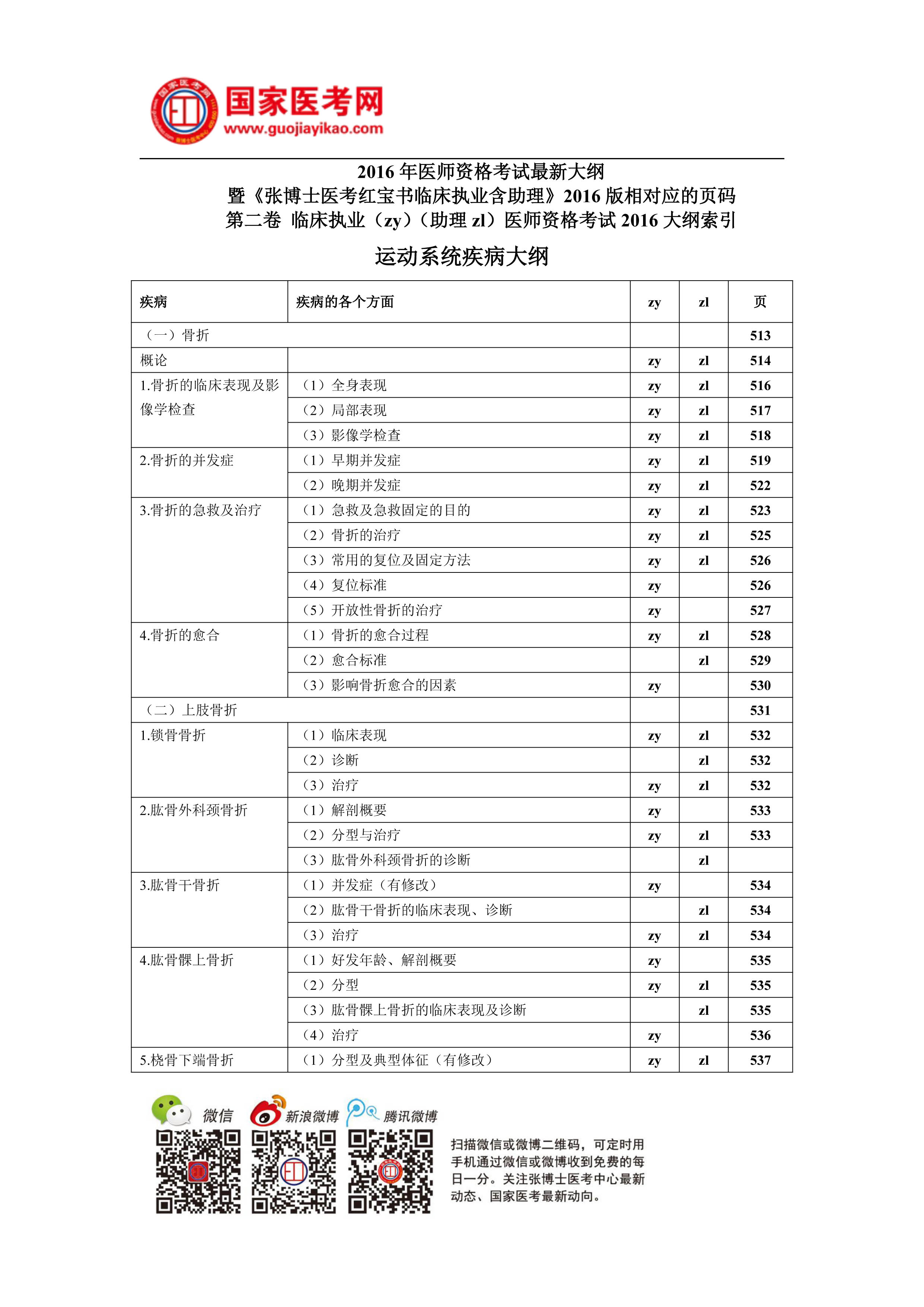 2016年国家医考临床执业含助理大纲——运动系统大纲