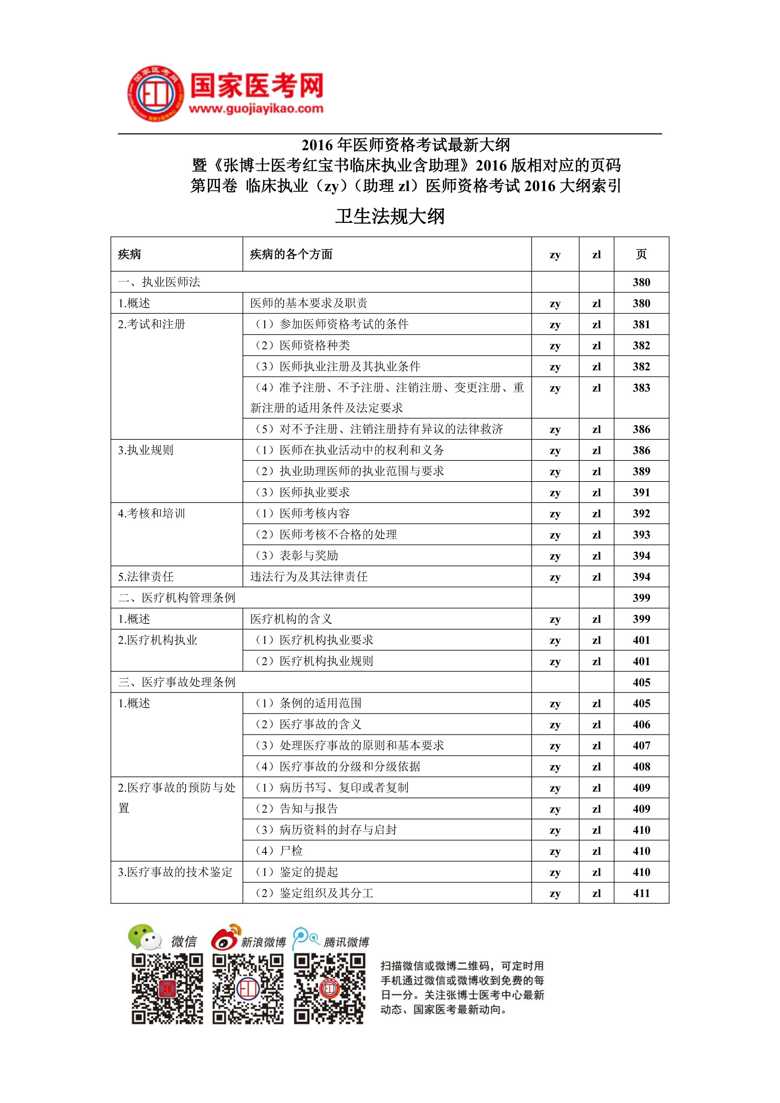 2016年国家医考临床执业含助理大纲——卫生法规大纲