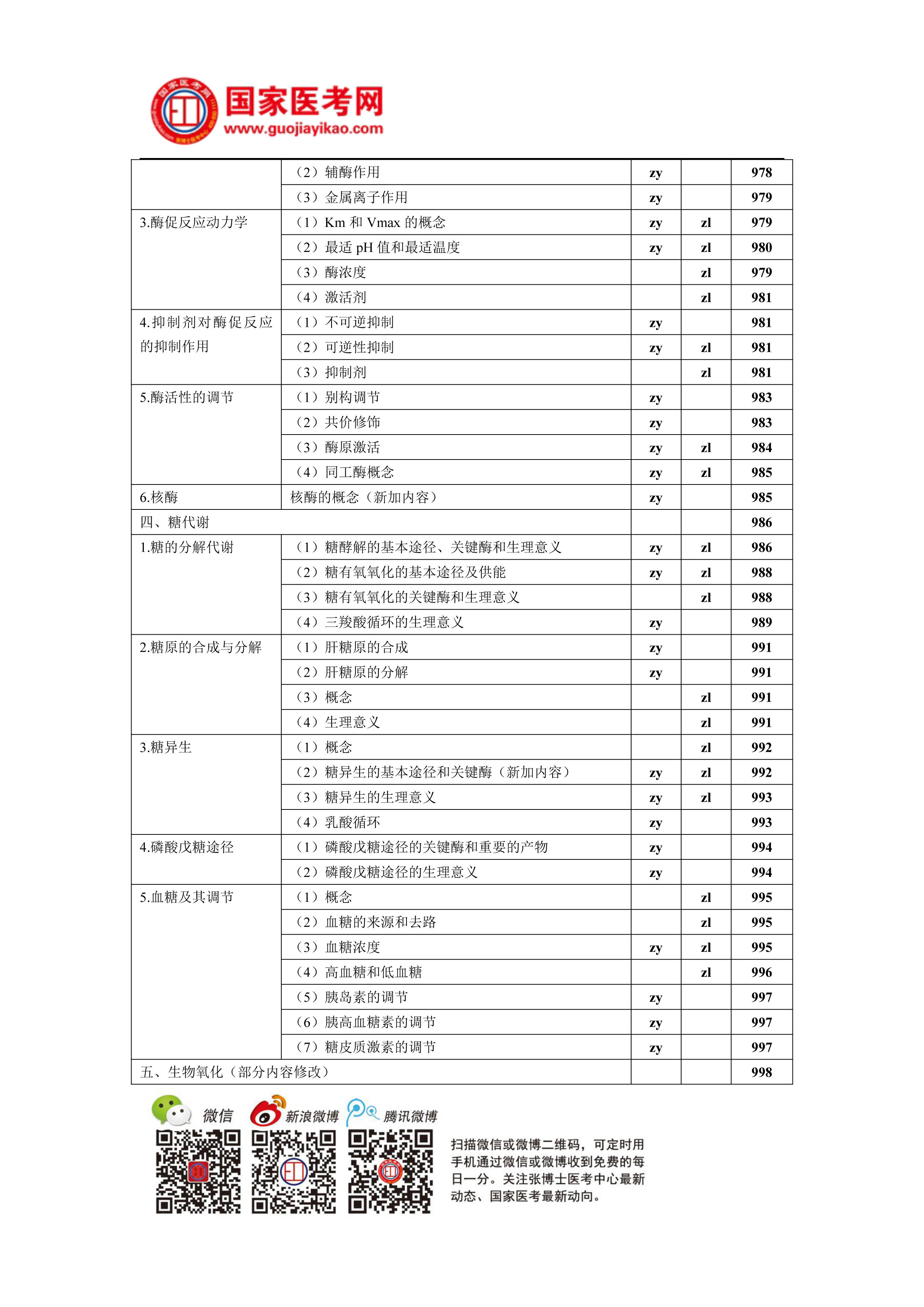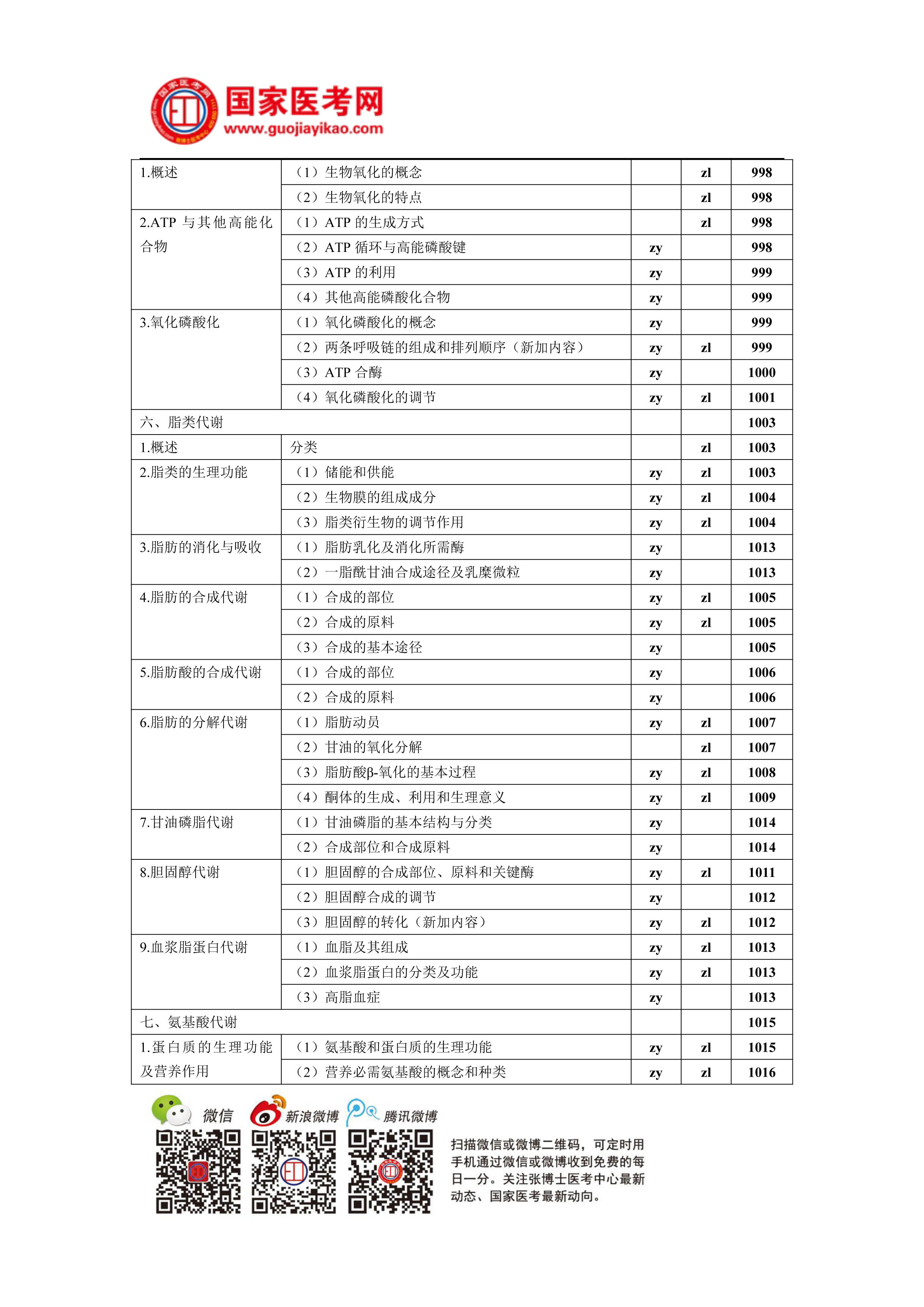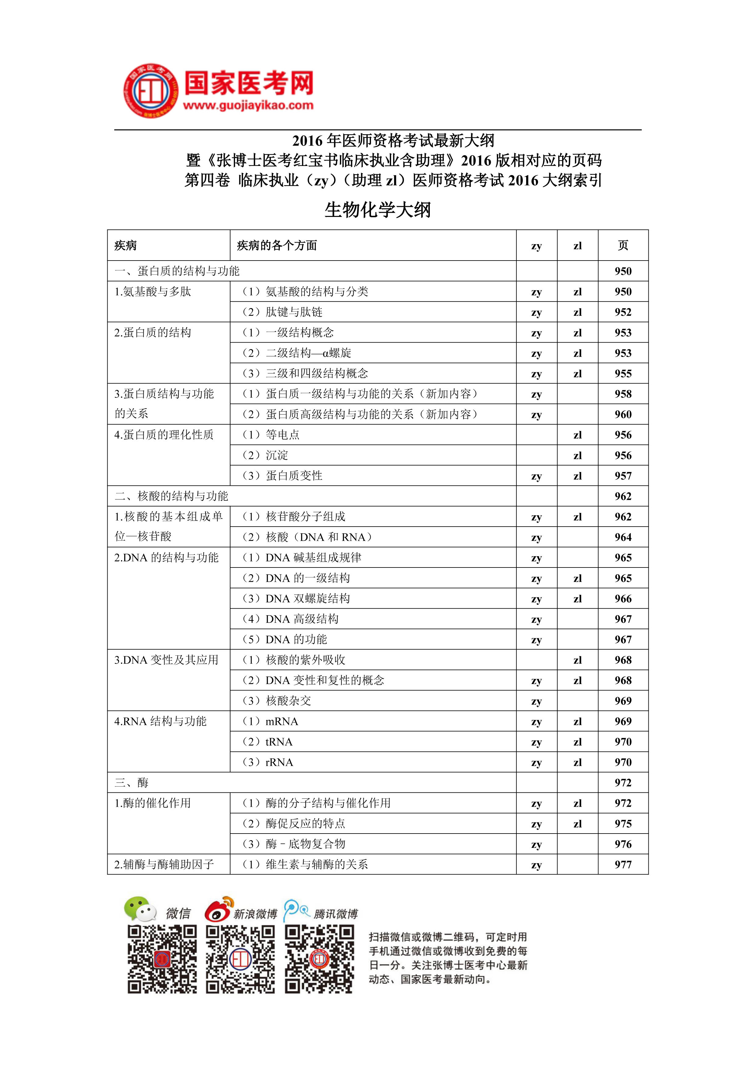 2016年国家医考临床执业含助理大纲——生物化学大纲大纲