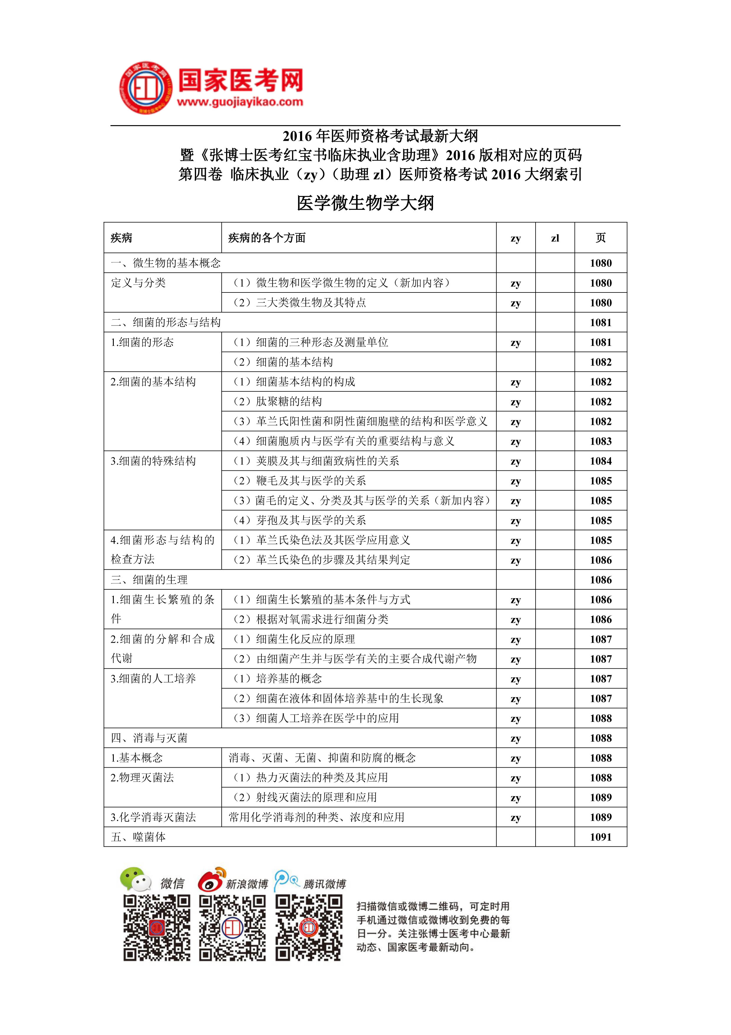 2016年国家医考临床执业含助理大纲——医学微生物学大纲