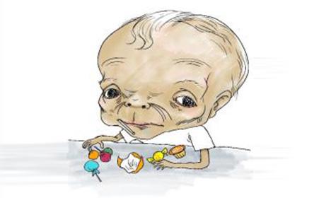 患儿精神萎糜、智力发育落后、肌肉萎缩、肌张力低下,体重低于正常40%以上,腹壁皮下脂肪消失。患者皮肤苍白、干燥、无弹性,毛发干枯,身高明显低于正常。患者常有低体温、脉搏缓慢、食欲不振、便秘症状。