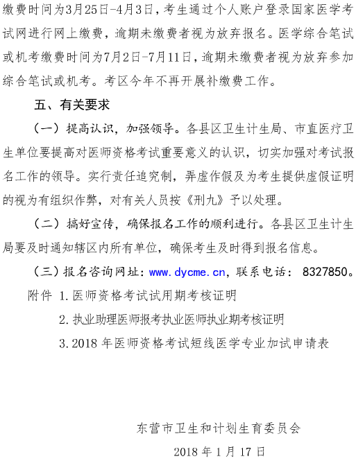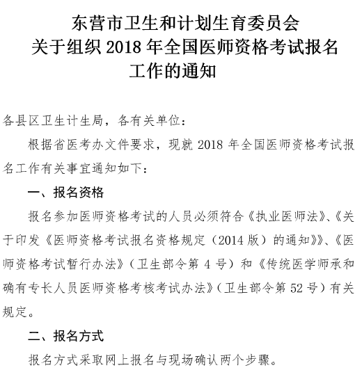 山东东营市2018年医师资格考试报名及现场审核安排