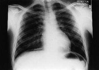 诊断:消化道穿孔图解:立位腹平片示双侧膈肌光滑,膈下可见新月形透亮的气体影。腹部肠管未见扩张及气液平。