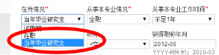 在岗情况一项中,以研究生学历报考的考生应注意,若本人为当年毕业研究生,尚未获取毕业证书,此处需要选择为“当年毕业研究生”。