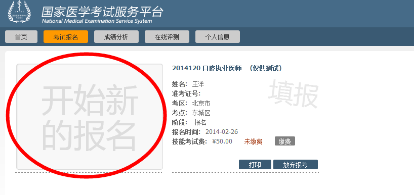 页面左首显示为“开始新的报名”,点击“开始新的报名”即可开始进行报名操作。同时在右侧会顺序列出在考试平台中曾经报考的考试项目及基本情况。注意:报名信息不提供修改功能,请务必检查自己所报考的考试科目,考区/考点是否正确;如发现报考有误,在网上报名期间,可通过报考项目方框右下方的“放弃报考”予以放弃,然后重新“开始新的报名”进行报名。