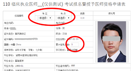 最后需要用户再次检查本次报名信息并选择报考的考区和考点;同时,由于新的考试服务平台刚刚上线,需要往届考生补充填报累计报考次数一栏(首次报考考生可不予填写,默认次数为1)。完成后点击提交按钮即可结束报名,跳转回考试报名模块,选择打印申请表或其他操作。