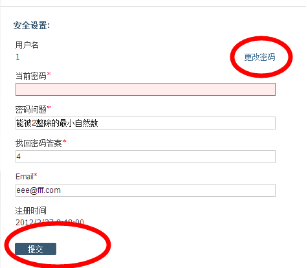 用户注册成功后可切换至帐号安全设置模块进行帐号密码修订及密码找回设置。