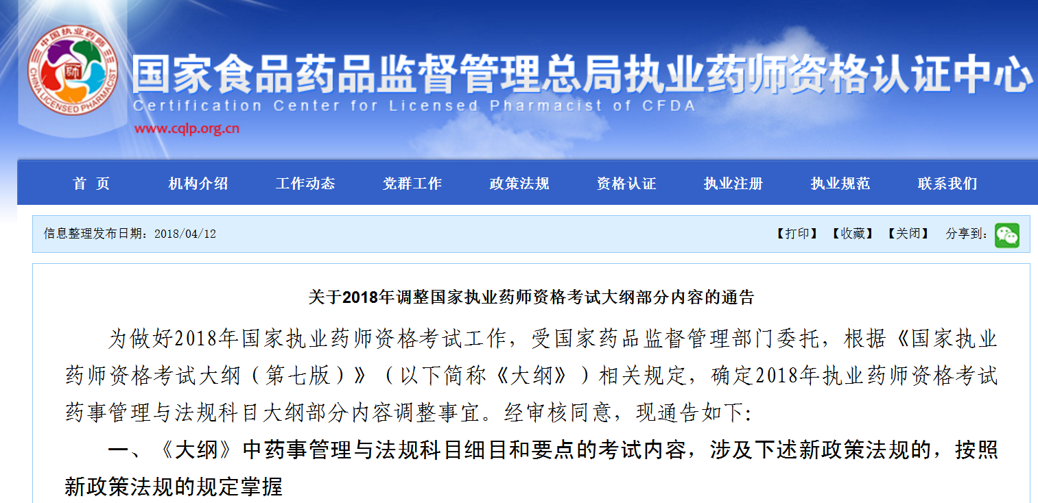 ①以往重点考点的内容在今年的大纲中发生了改动,例如:药品管理相关的各部门机构从名称到职能都发生了变化。