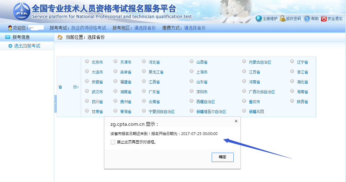 根据中国人事考试网(http://www.cpta.com.cn/)网上报名入口显示,重庆市2017年执业药师考试报名入口开通时间为7月25日,希望重庆市考生及时关注,不要错过报名时间。