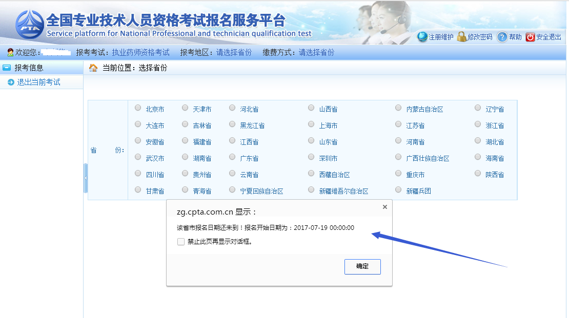 根据中国人事考试网(http://www.cpta.com.cn/)网上报名入口显示,北京市2017年执业药师考试报名入口开通时间为7月19日,希望北京考生不要错过报名时间。